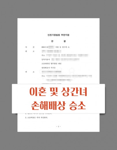 • 이혼소송 바람 핀 배우자와 상간자에게 이혼 및 손해배상 소송