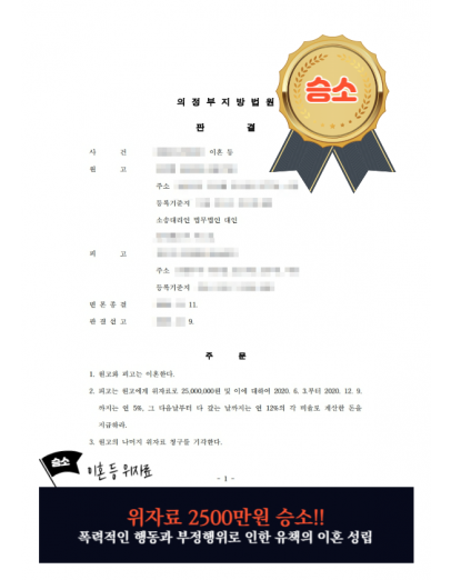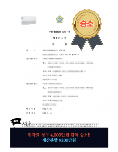 • 이혼소송 위자료 감액해서 승소, 재산분할, 이혼 등