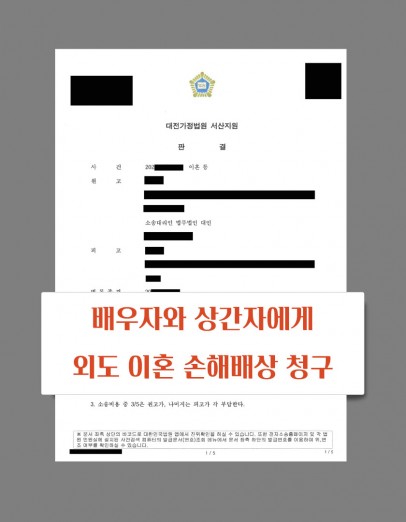 • 이혼소송 바람 핀 배우자와 상간자에게 이혼 및 손해배상 소송