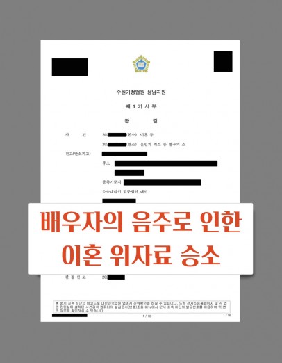 • 이혼소송 배우자의 음주 문제로 인한 이혼 위자료 및 재산분할
